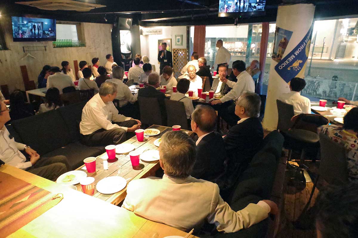 記念撮影後、会場近くの「カリフォルニアダイナー ~レラシオン~」で懇親会を行いました。江成同窓会長と師岡校長先生にもご参加いただき、本番の余韻を味わいながら、また来年の参加を期して散会しました。次回第21回校歌祭は、2026年10月24日(土)に、南足柄市文化会館ホールで開催されます。また翠嵐会ホームページでご案内をいたしますので、ぜひ、多くの方々の参加をお願いいたします。